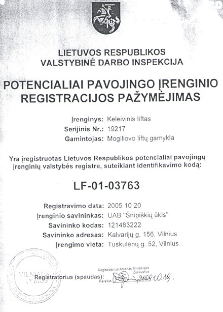 Svarbu, kad UAB „Šnipiškių ūkis“ jau nėra , o kito asmens, kuriam būtų VDI išdavusi liftų savininko pažymėjimus , irgi nėra.