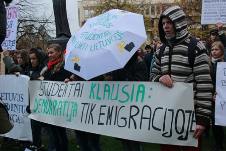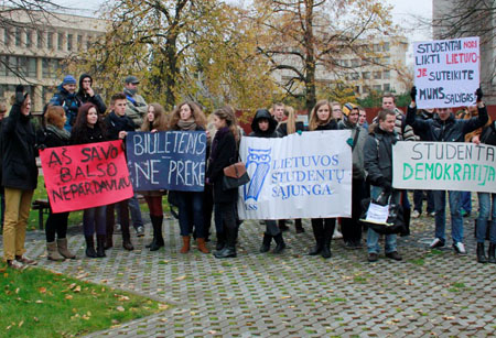 Studentai į protesto akciją atėjo nešini ne tik plakatais, klausiančiais, ar demokratija įmanoma tik emigracijoje, bet apsirūpino ir „pinigais“ rinkėjų papirkimui – dalino šokoladinius eurus, kviesdami praeivius balsuoti už ką tik nori.