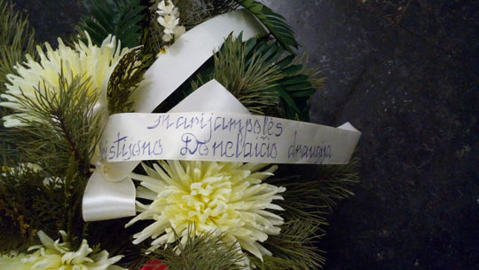 standartiniu tipografiniu būdu, o ant antro – „Marijampolės Kristijono Donelaičio draugija“, parašyta paprastu rašikliu. Netikiu, kad Lietuva neturi pinigų netgi gedulo juostoms savo nacionaliniam pasididžiavimui“, – įgėlė Rusijos žurnalistas.