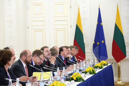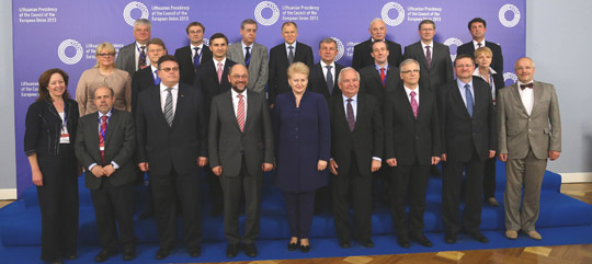 Iki Lietuvos pirmininkavimo Europos Sąjungos Tarybai likus vienam mėnesiui, Lietuvos Respublikos Prezidentė Dalia Grybauskaitė susitiko su Europos Parlamento Pirmininku Martinu Schulzu ir strateginius sprendimus priimančios Europos Parlamento pirmininkų Konferencijos nariais, kuriems šalies vadovė pristatė Lietuvos Vyriausybę ir svarbiausius Lietuvos pirmininkavimo ES Tarybai darbus.
