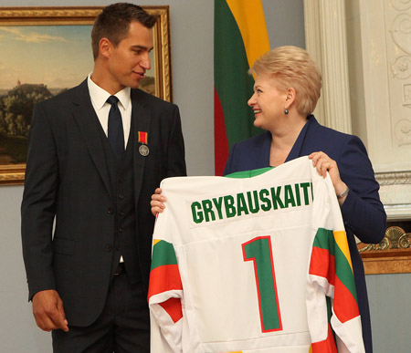 Lietuvos Respublikos Prezidentė Dalia Grybauskaitė už visuomeninę veiklą ordino „Už nuopelnus Lietuvai” medaliu apdovanojo profesionalų ledo ritulio žaidėją Dainių Zubrų.