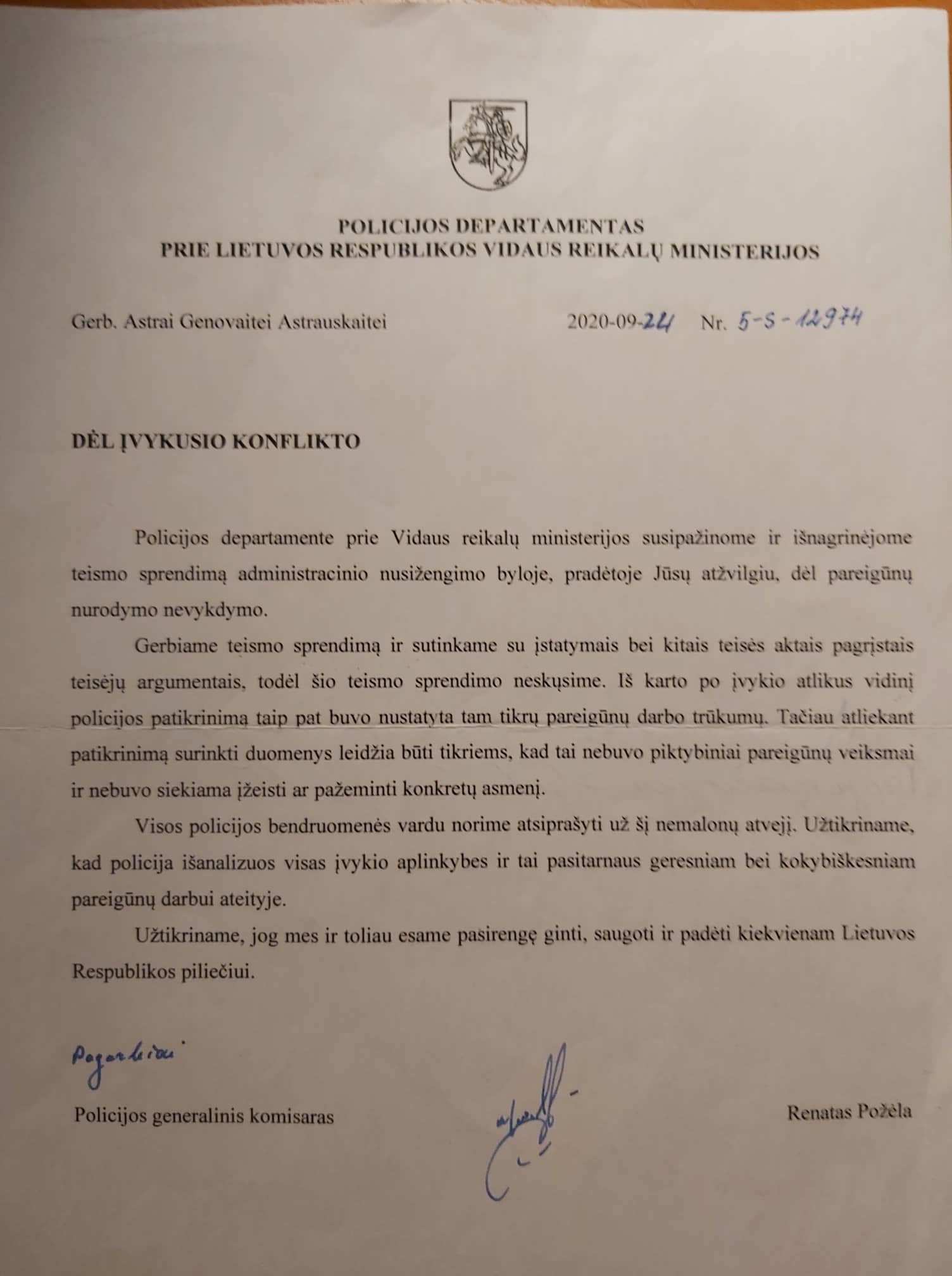 Generalinis policijos komisaras Renatas Požėla netgi atsiuntė atsiprašymą.