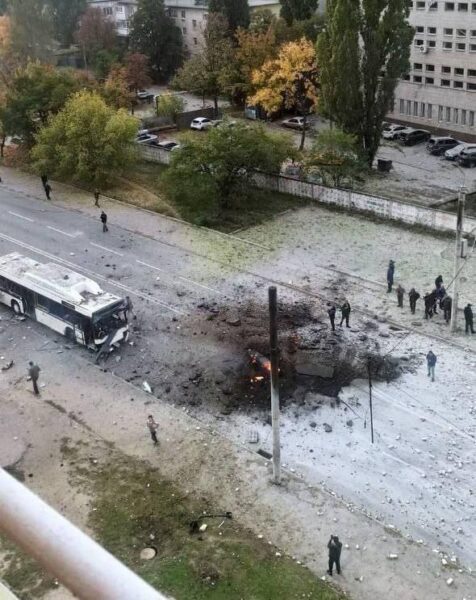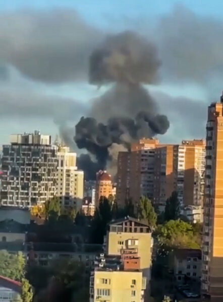 Kijevas pranešė, kad keletas raketų pataikė į Kijevo centrą. Buvo smūgiuota į vaikų žaidimų aikštelę, pėsčiųjų tiltą, važiuojamą gatvę ir biznio centrą. Žuvo 5 žmonės.