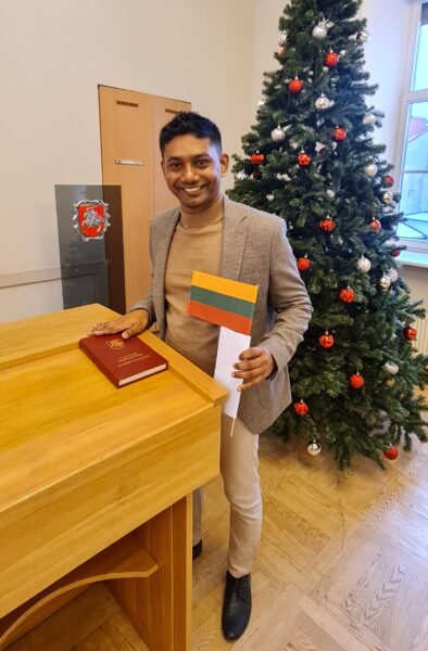 Čia jis, beje, pirmą kartą susidūrė su Lietuva. Išvykti iš Bangladešo padedančioje įmonėje 2008 m. jam siūlė vykti į Lietuvą, pristatydami ją kaip „naują šalį Europoje, kurioje didelės studijų galimybės“.