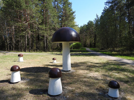 Visi tikri ignaliniečiai puikiausiai žino, ką reiškia pasakymas „prie grybų…“. Šalia kelio „Vilnius-Švenčionys-Zarasai“, ties posūkiu į Vidiškes, jau kelis dešimtmečius stovintys grybai daugeliui yra mielas akcentas, su kuriuo susiję daug prisiminimų. Dabar iš buvusių grybų liko tik vienas ir tas jau labai pavargęs. Na o pravažiuojančių žvilgsnius traukia nauji grybai – rudakepuriai, baltakamieniai baravykai. Stovi kaip tikri. Vienas didelis ir penki maži, rateliu jį apsupę.