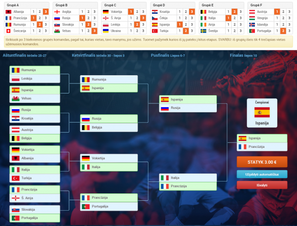 Ne tik Lietuvoje, tačiau ir Didžiojoje Britanijoje, Danijoje, Estijoje, bei kitose Europos šalyse veikianti bendrovė galimybę atspėti Europos čempionato nugalėtojus suteiks visiems savo žaidėjams ir tikisi, kad šansas laimėti milžinišką piniginį prizą atkreips ne tik Lietuvos, bet ir viso pasaulio futbolo gerbėjų dėmesį.