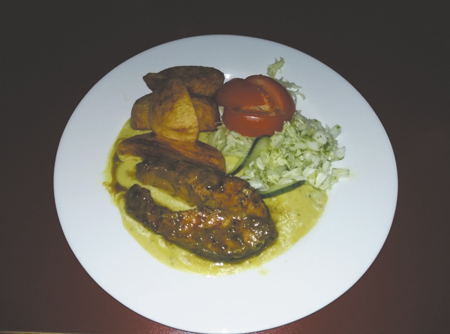 Marinatas lašišai: 1 šaukštas aliejaus, citrinų sulčių, grūdėtų garstyčių, šaukštas medaus, druskos, pipirų… Pamarinuojame lašišą dviem valandom.