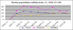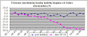 Didžiausia užsienio (motininių) bankų indėlių suma šalies bankuose, buvusi 2008 m. spalio pabaigoje (39,1 mlrd. Lt) iki šių metų rugsėjo pabaigos sumažinta 10,9 mlrd. Lt, arba 27,9 %. Jos dalis bankų kredito ištekliuose sumažėjo nuo 45,5 % 2008 m. spalio mėn. iki 33,4 % dabar. Užsienio bankų lėšų bėgimą iš šalies ekonomikos matome grafike Nr. 8: