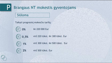 – esamą 0,5 procento tarifą taikyti bendros nekilnojamojo turto vertės daliai, viršijančiai 220 000 eurų dydį, tačiau neviršijančiai 300 000 eurų;