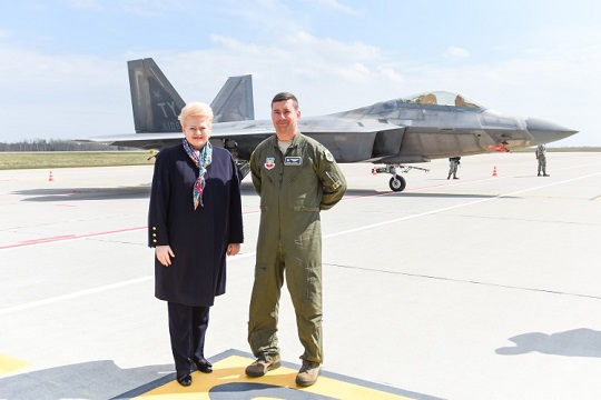 Lietuvos Respublikos Prezidentė Dalia Grybauskaitė pasitiko ir apžiūrėjo į Lietuvos karinių oro pajėgų bazę Zokniuose atvykusius naujausios kartos Jungtinių Amerikos Valstijų naikintuvus „F-22 Raptor“. Nematomais vadinami naikintuvai į Lietuvą atskrenda pirmą kartą. Tai vienas moderniausių ginklų pasaulyje, kurio nefiksuoja radiolokaciniai radarai.