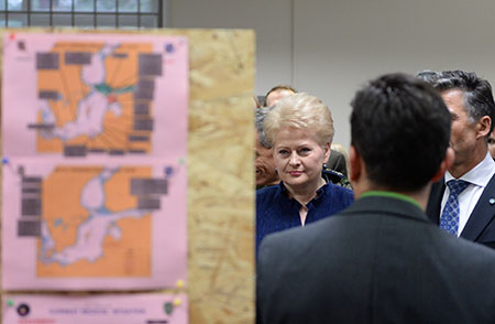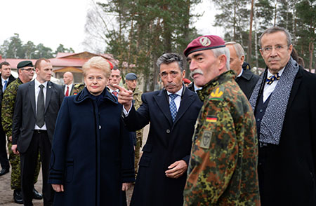 Lietuvos Respublikos Prezidentė kartu su Latvijos Prezidentu Andriu Bėrziniu, Estijos Prezidentu Toomu Hendriku Ilvesu ir NATO Generaliniu Sekretoriumi Andersu Foghu Rasmussenu Adažių poligone Latvijoje stebi pirmą kartą regione surengtas kolektyvinės NATO gynybos ir greitojo reagavimo pratybas „Steadfast Jazz 2013″. Tai didžiausios NATO pratybos nuo 2006 m.
