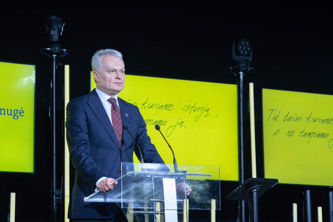 Prezidentas pažymėjo, kad barbariškos Rusijos agresijos prieš Ukrainą akivaizdoje Vilniaus knygų mugė tampa Laisvės manifestu – laisvės skaityti, mąstyti, savarankiškai priimti sprendimus. Šalies vadovas įrašė pirmąją iš 700 mugės eilučių laisvei: „Tik laisvi kuriame istoriją, o ne tampame ja.”