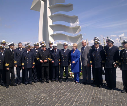 Prezidentė Dalia Grybauskaitė lankydamasi Klaipėdoje prie „Albatroso” paminklo dalyvavo negrįžusiųjų iš jūros pagerbimo ceremonijoje.
