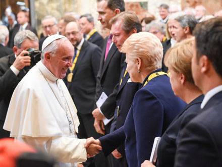 „Popiežius Pranciškus daugeliui europiečių yra moralinis autoritetas ir sąžinės balsas. Europai susiduriant su sudėtingais iššūkiais ir išgyvenant pasitikėjimo krizę, Šventojo Tėvo kvietimas saugoti vienybę, jo asmeninė lyderystė, meilė ir pagarba žmogui, gailestingumas ir atjauta yra pavyzdys ir įkvėpimas milijonams žmonių“, – sakė Prezidentė.