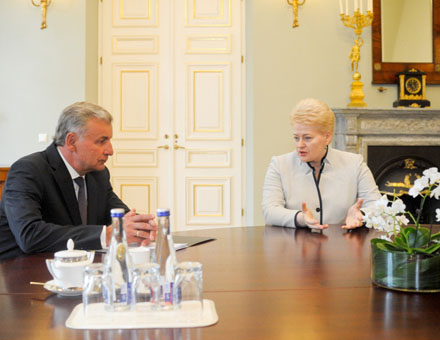 Lietuvos Respublikos Prezidentė Dalia Grybauskaitė su susisiekimo ministru Rimantu Sinkevičiumi aptarė bendrovės „Lietuvos jūrų laivininkystė“ problemas ir bendrovės „Lietuvos geležinkeliai“ veiklą.