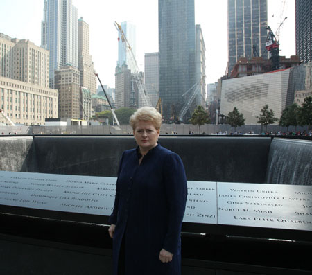 Lietuvos Respublikos Prezidentė Dalia Grybauskaitė, baigdama darbo vizitą Jungtinėse Amerikos Valstijose, apsilankė ir padėjo gėlių prie memorialo Rugsėjo 11-osios teroro akto aukoms pagerbti.