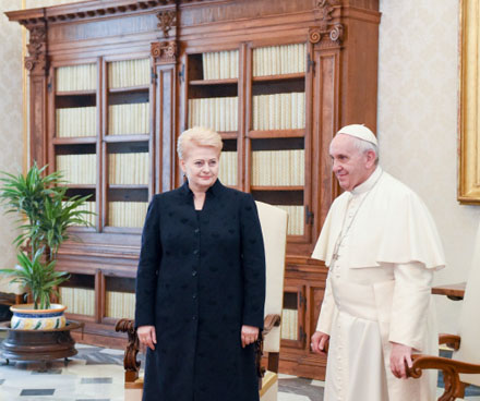 Lietuvos Respublikos Prezidentė Dalia Grybauskaitė darbo vizito vyksta į Vatikaną, kur penktadienį, gegužės 6 d. dalyvaus iškilmingoje Tarptautinio Karolio Didžiojo apdovanojimo įteikimo Popiežiui Pranciškui ceremonijoje.