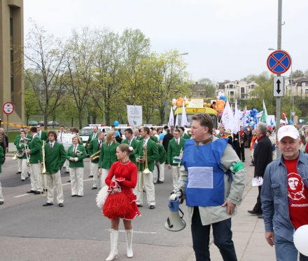Socialdemokratai ir profsąjungiečiai ėjo bendroje kolonoje. Šalia Socialdemokratų partijos Vilniaus skyriaus pirmininko Romo Adomavičiaus žygiavo Lietuvos profesinių sąjungos konfederacijos pirmininkas A.Černiauskas ir Seimo Socialdemokratų frakcijos narys A.Sysas. Seimo narys A.Sysas buvo apsivilkęs raudonus marškinėlius su Čegevaros atvaizdu. Tarp socialdemokratų žygiavo ir Europos Parlamento narys, SFL pirmininko Algirdo Paleckio tėvas Justas Paleckis.