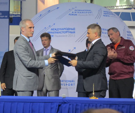 Tarptautinio oro transporto forumo (IATF 2012) metu vykusioje oficialioje ceremonijoje sutartį dėl veiklos Uljanovsko laisvoje ekonominėje zonoje pradžios pasirašė „Avia Solutions Group“ Valdybos pirmininkas Gediminas Žiemelis ir Uljanovsko srities gubernatorius Sergejus Morozovas. Sutarties pasirašymo ceremonijoje taip pat dalyvavo Rusijos Federacijos Prezidento V. Putino patarėjas Igoris Levitinas, Rusijos Federacijos Transporto ministras Maksimas Sokolovas, Rusijos Federacijos Prezidento įgaliotas atstovas Pavolgio Federalinėje apygardoje Michailas Babičas, Rusijos Federacijos Vyriausybės viceministras Dmitrijus Rogozinas. Po pasirašytos sutarties į pradedamo statyti naujo lėktuvų techninio aptarnavimo centro numatytą vietą du parašiutininkai įleido vadinamąją laiko kapsulę ateities kartoms.
