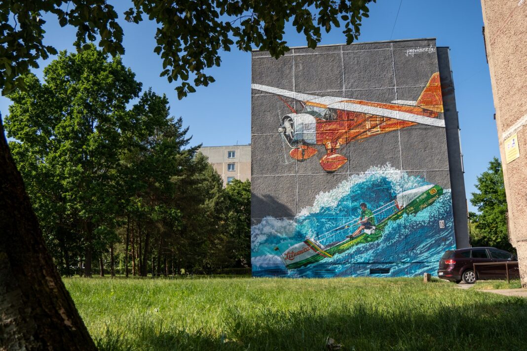 Kaunas toliau augina gatvės meno galeriją po atviru dangumi. „Gyvų sienų“ ekspoziciją papuošė scena su A. Valujavičiaus žygdarbiu irklais įveikiant Atlantą. Tiesa, valtis „Lituanica“ šią savaitę nupiešta prieš penkerius metus kurtame paveiksle, vaizduojančiame transatlantinį Stepono Dariaus ir Stasio Girėno skrydį. Simboliška, jog būtent šių metų liepą sukaks lygiai 90 metų nuo istorinio lakūnų iššūkio.