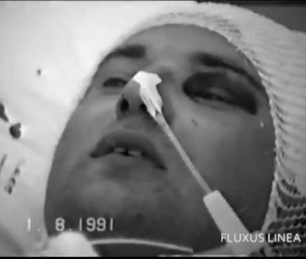 25:50 min. Tomas Šernas guli ant dešiniojo šono. Laikmatis rodo: 22:25 val. 2. 08. 1991