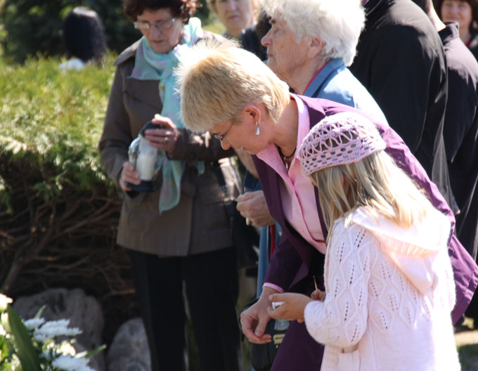 "Šitas ženklas mums nuolatos turėtų sakyti, jog turime išgelbėti ne tik vaiką, bet ir vaikus, ir savo valstybę, ir kurti valstybę, kurioje gyventume kaip žmonės tarp žmonių", - šventinant paminklą D.Kedžiui sakė kunigas J.Varkala (KK nuotr.)