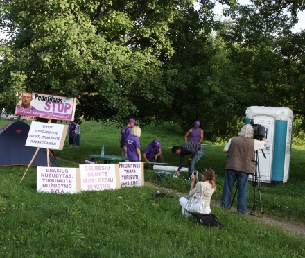 Apie tai, kad akcija – ilgalaikė, byloja ir prie protestuotojų palapinės pastatytas biotualetas.