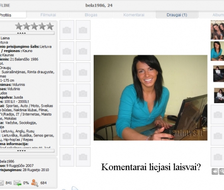 Pažinčių puslapyje – ir L.Stankūnaitės nuotrauka. Joje besišypsanti Laima – su draugėmis. „Aš viduryje“, – po nuotrauka rašo L.Stankūnaitė.
