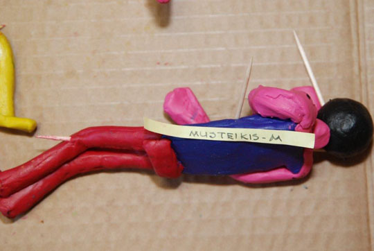 A.Musteikis, muitinės pareigūnas. Rastas gulintis ant grindų namelio viduje, šautiniai sužalojimai tokie: dvi kulkos užstrigusios krūtinės viduje, viena kiaurai perskrodusi galvą, viena – kiaurai koją: