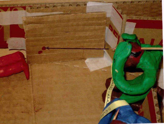 O dabar sugrįžkime į 1991 m. liepos 31 d. Medininkus. Įvykių vietos maketo rekonstrukcija atlikta pagal teismo ekspertų išvadas.