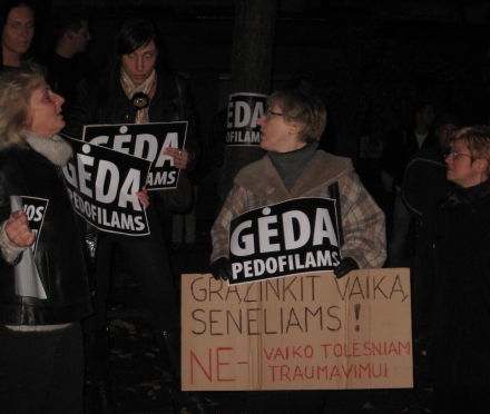 Protesto vietoje susirinko daugiau nei šimtas žmonių. Nepasitenkinimas Lietuvos teisėtvarka bei teismų sistema buvo išreikštas taikiomis ir kiek ironiškomis priemonėmis: Kauno apygardos prokuratūros palangės buvo nuklotos degančiomis žvakutėmis, pliušiniais žaisliukais bei plakatais su užrašais – “Gėda pedofilams", "Žemėj Lietuvos sysalai žaliuos…", "Grąžinkit vaiką seneliams! NE – vaiko tolesniam traumavimui!".
